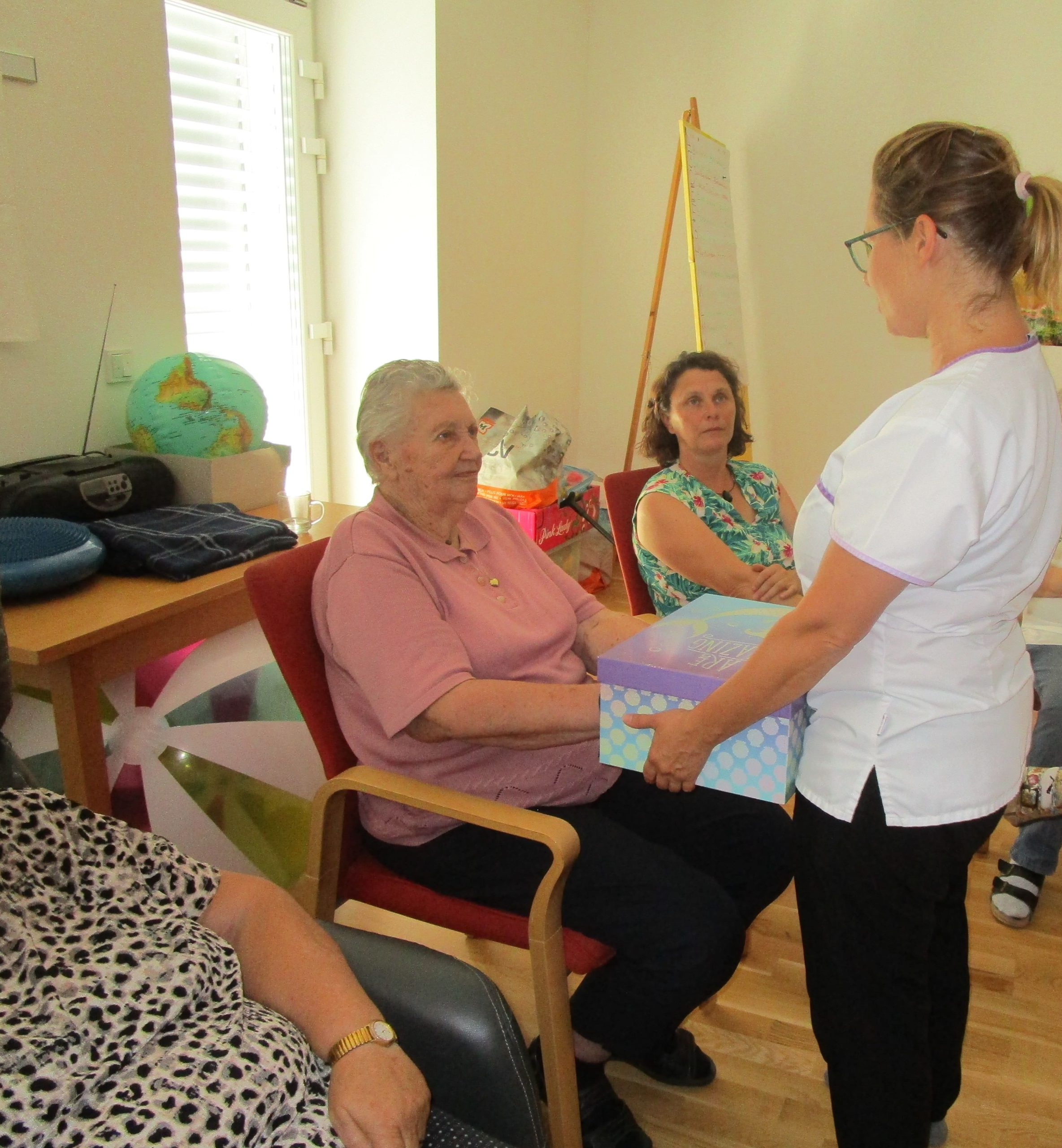 Durch den Einsatz verschiedener Duftgegenstände wurde der Geruchssinn von unseren Tagesgästen aktiviert. Zur Stärkung vom Tastsinn mussten diverse Objekte in einer Schachtel erraten werden.