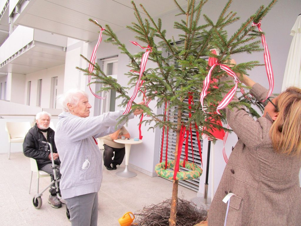 Freude kam auf. Alle warteten auf den schön geschmückten Maibaum, welcher das Leben, die Fruchtbarkeit und die Lebensfreude symoblisiert. Mit dem Stellen des Maibaums begrüßen die Tagesgäste im Haus Luise den Frühling und verbrachten einen schönen, schwungvollen Nachmittag mit Musik, Tanz und gutem Essen.