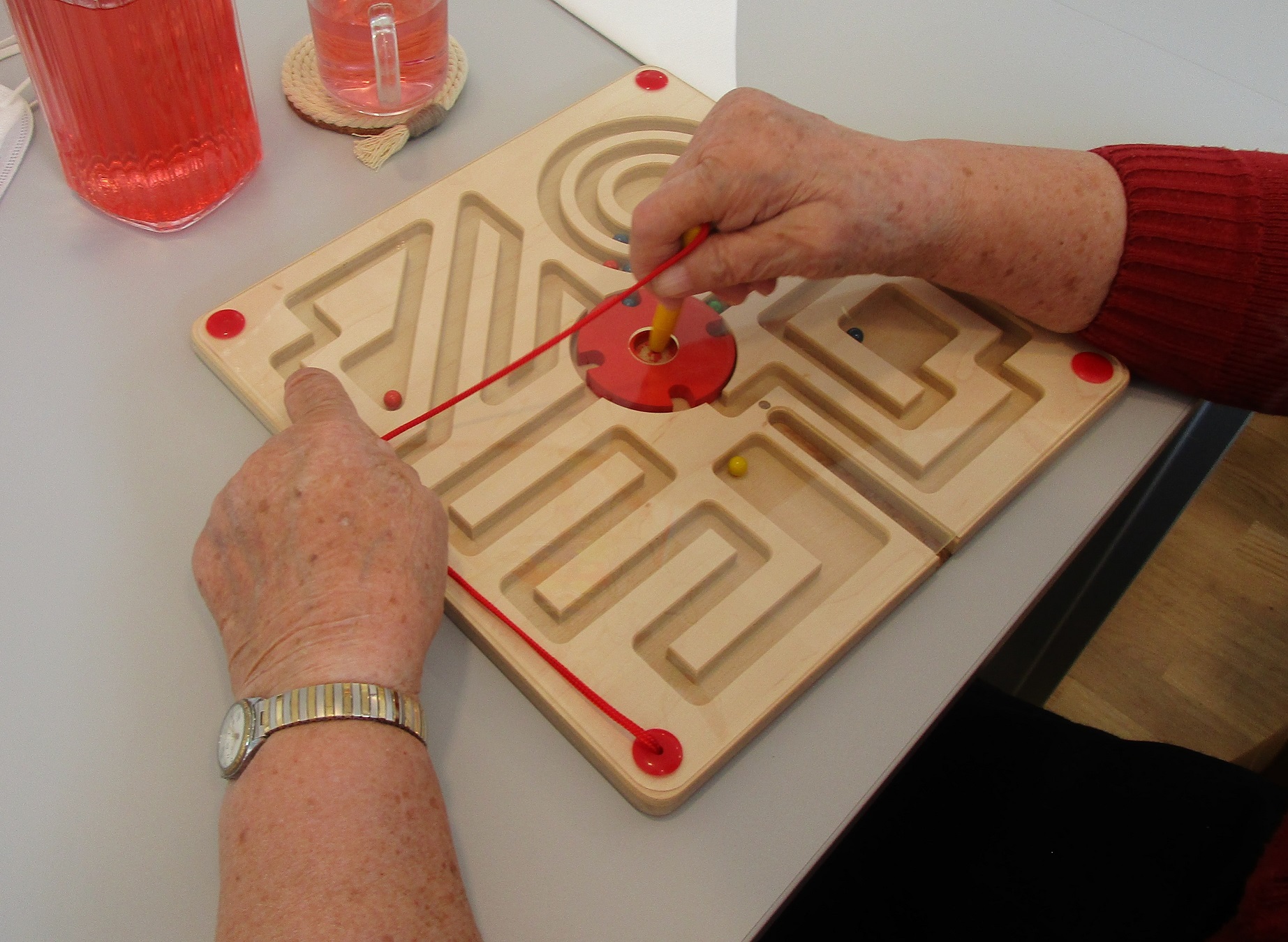 Im Haus Luise steht das Wohl und die Gesundheit der Tagesgäste an oberster Stelle. Mit einem Geschicklichkeitsspiel wird nicht nur die kognitive Fähigkeit gestärkt sondern auch die Feinmotorik gefördert.