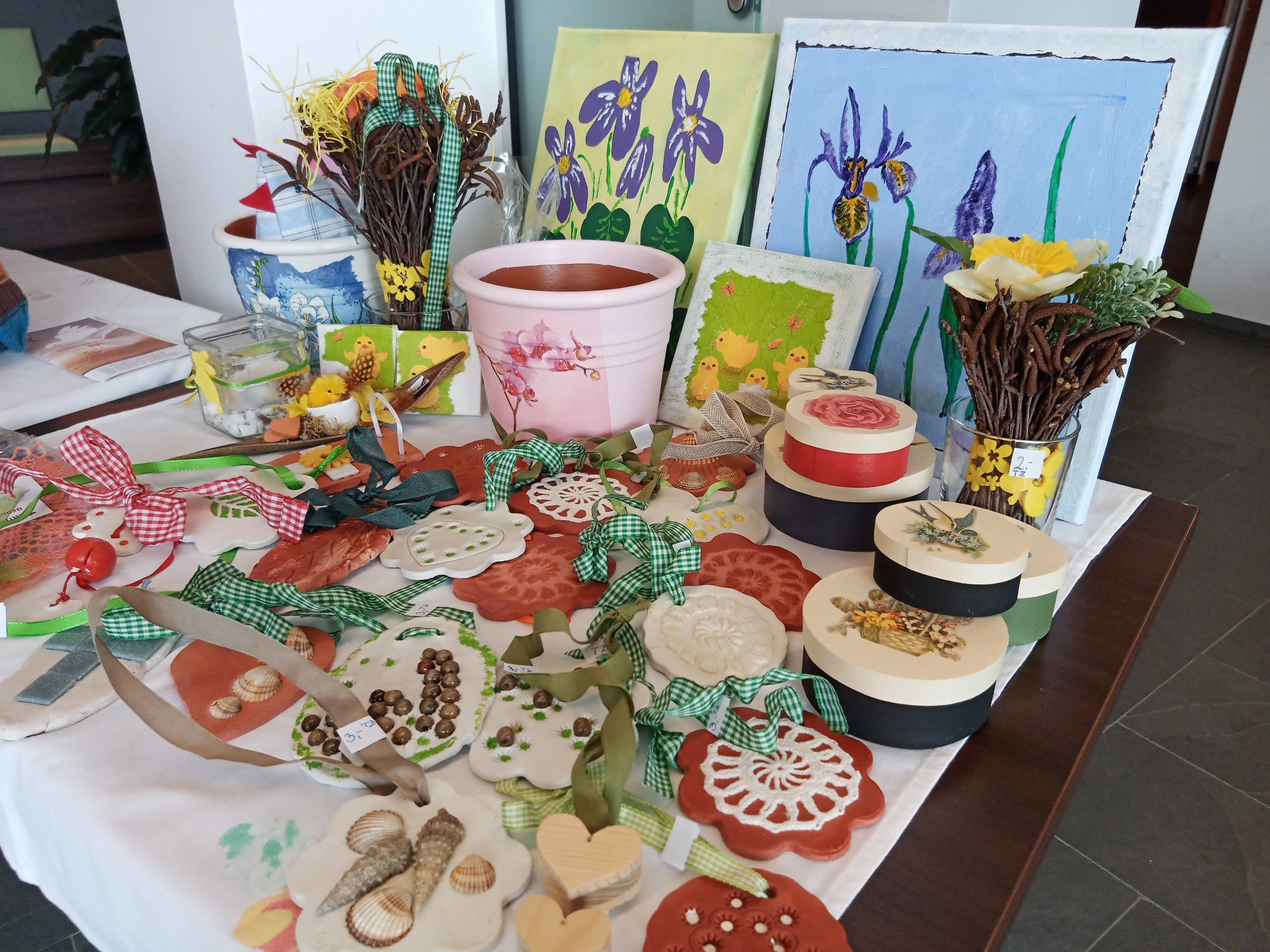 Bei diesem Anblick blüht das Frühlingsherz auf und man bekommt richtig Lust auf eine neue Frühlingsdekoration. Auch als kleines Geschenk für Herzensmenschen ist es perfekt. Die Tagesgäste waren besonders kreativ und stellten aus Ton, Anhänger her. Gerne könnt ihr im Haus St. Vinzenz im Eingangsbereich schmökern.