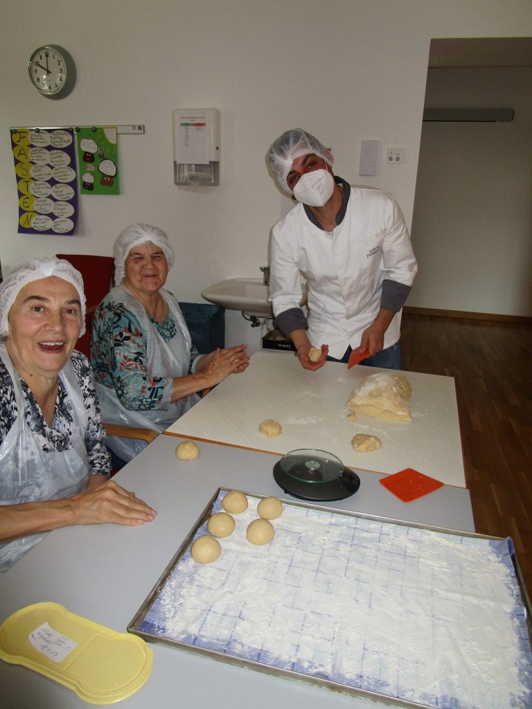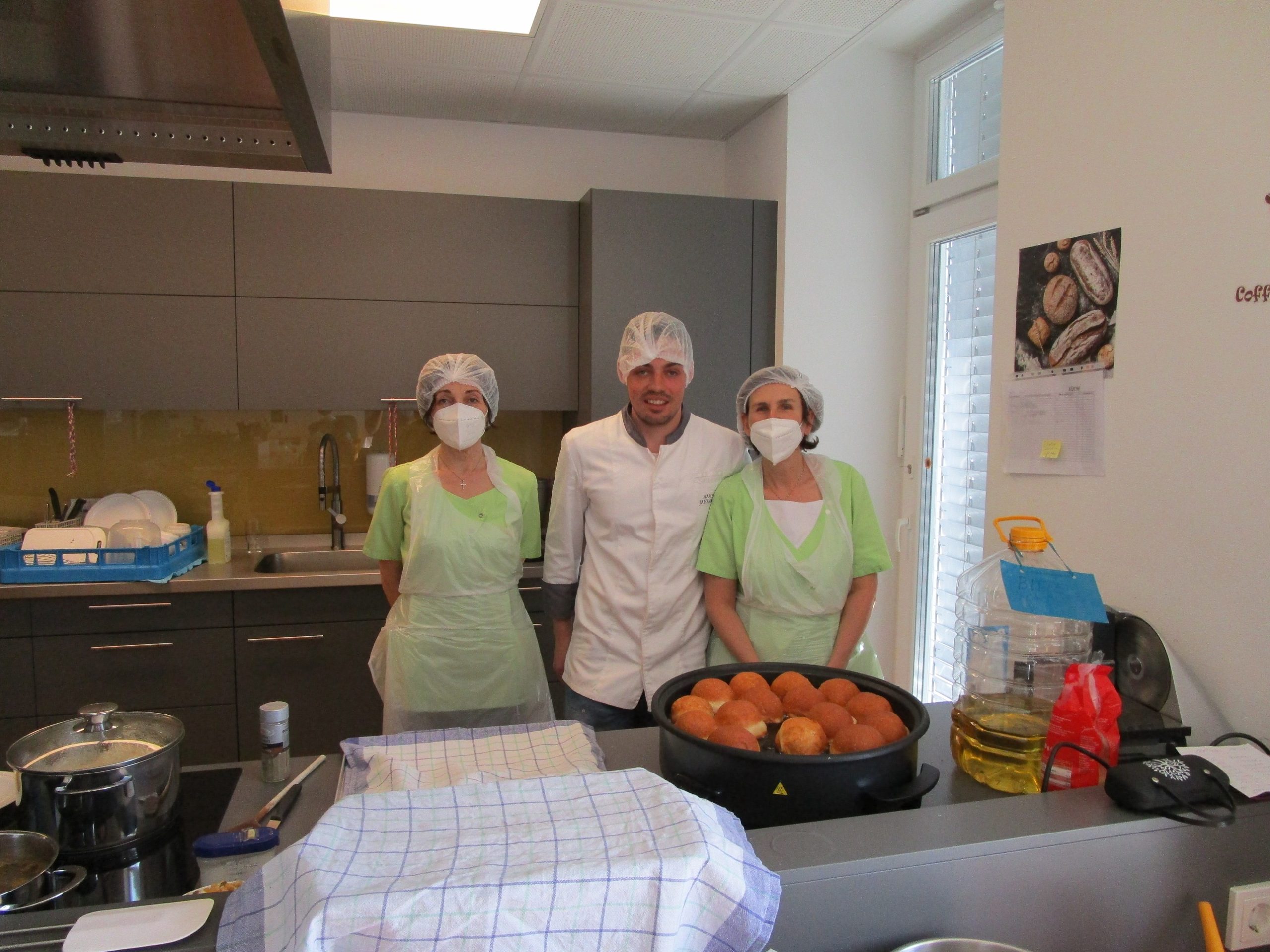 Letzte Woche waren die Tagesgäste in Backfieber und luden für hilfreiche Tipps und Tricks rundums Backen und Kochen, Aaron den Küchenchef des Haus St. Vinzenz ein. Gemeinsam wurden österreichische Spezialitäten wie Wiener Schnitzel und Krapfen zubereitet und in netter Runde verköstigt. Lustig war´s – das Kochen mit Aaron! Danke für Deinen Besuch!