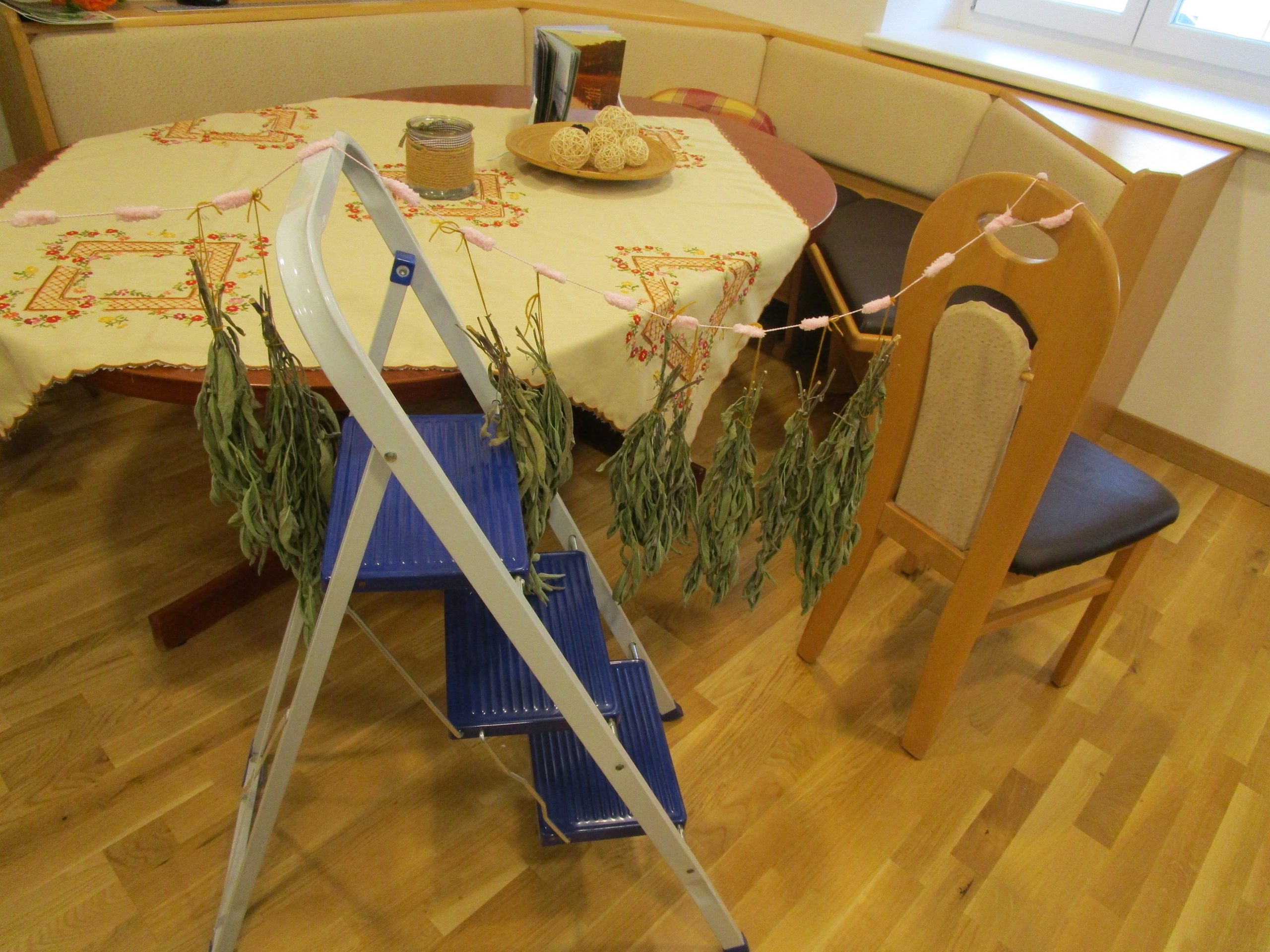 Die Tagesgäste im Haus Luise bereiten sich schon auf die Teezeit vor und trocknen fleißig Kräuter.