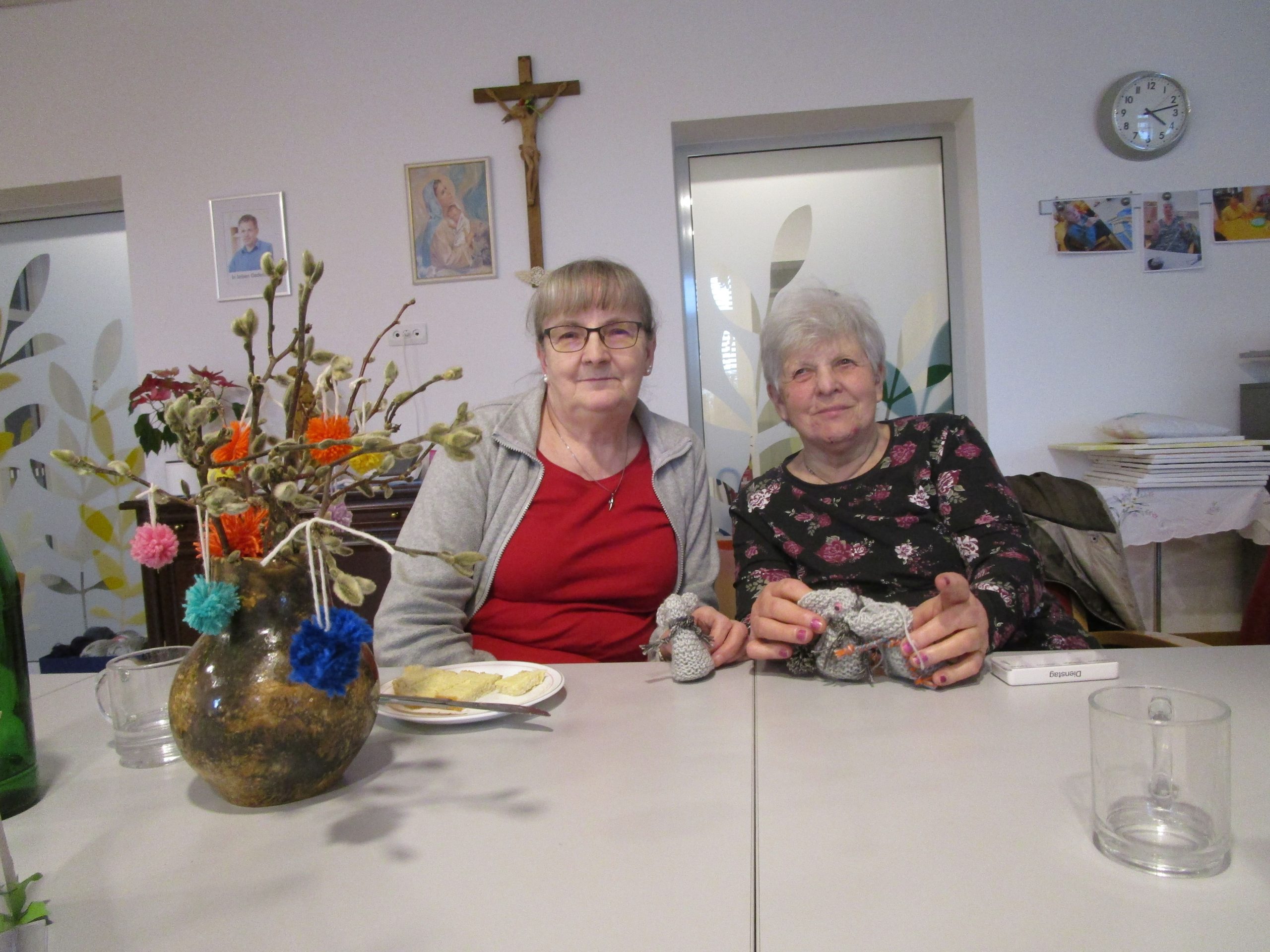 Unsere Tagesgäste beginnen bereits mit den ersten Vorbereitungen. Für den Osterbasar werden Hasen gestrickt. Diese Hasen werden mit einer Füllwatte ausgestopft, damit sie weich sind.