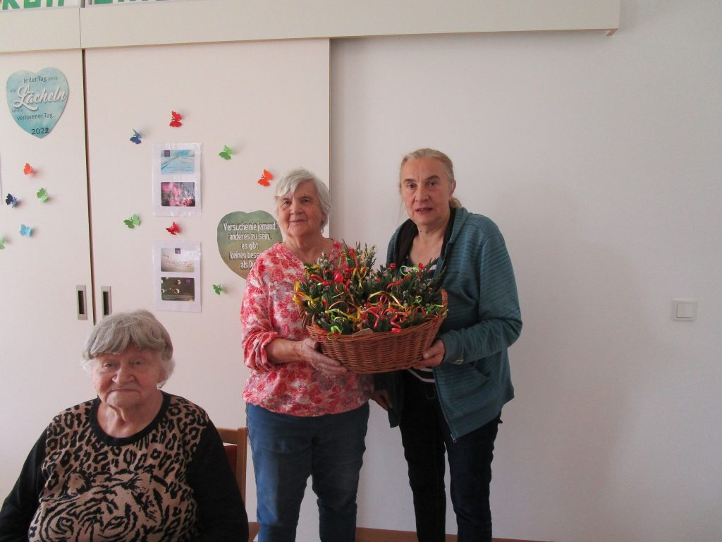 Palmzweige sind ein wesentliches Symbol und versinnbilden das Leben Jesus. Die Palmweihe im Haus Luise war eine bewegende Wortgottesfeier, welche an den Einzug von Christus in die Stadt Jerusalem erinnerte und Segen für das Haus brachte. Anschließend wurden die geweihten Palmbüsche an einem besondern Ort im Haus Luise gestellt. Auch für unsere Praktikantinnen war die Wortgottesfeier etwas Besonderes. Sie stellten schnell fest, dass Glaube, Spiritualität und Traditionen viel mehr mit Freude und Besinnung verbunden ist und ein Mehrwert für die Lebensqualität ist.