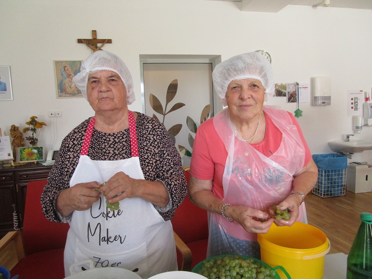Die Tagesgäste hatten alle Hände voll zu tun. Denn die Traubenlese stand am Tagesprogramm. Heraus kam ein saftiger Traubensaft.